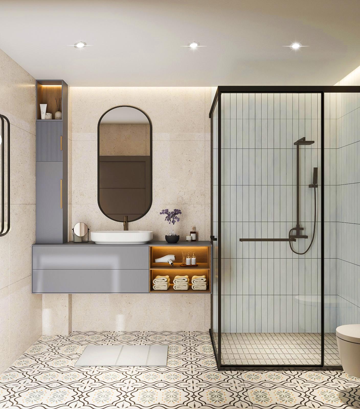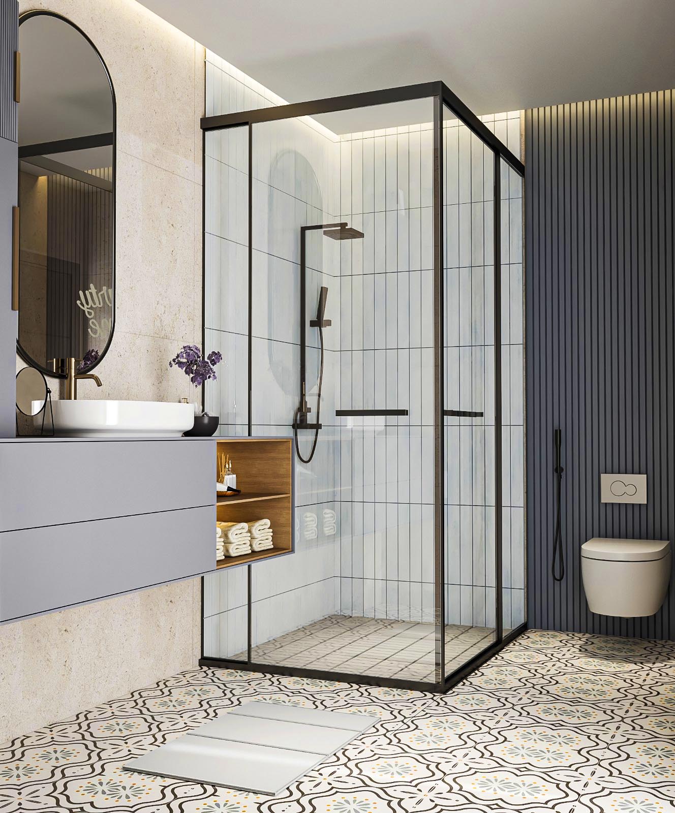 Salle de bain équipée, robinetterie et équipement de sanitaire de haut standing